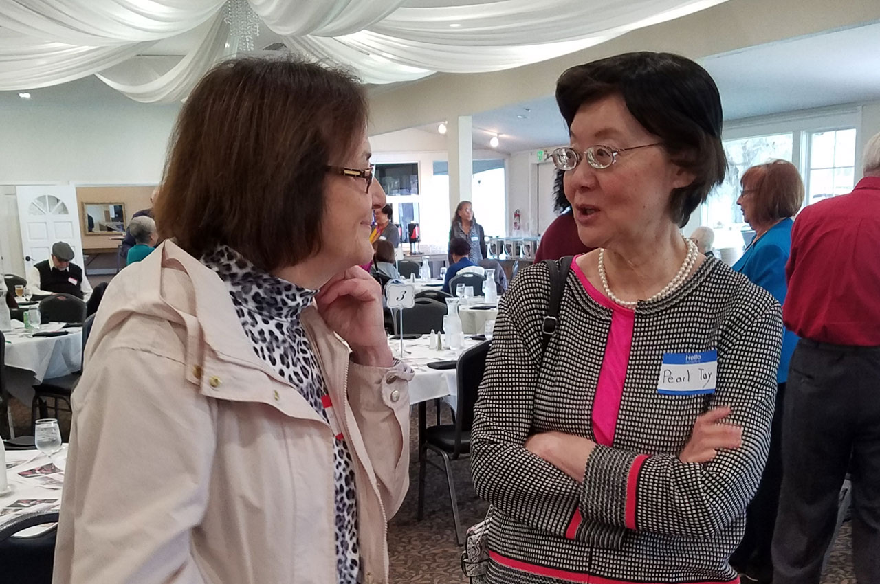 Following lunch, Bob Wiseman conducted the door prize drawing with assistance from the team of Linda Barde-Zimmerling, Les Bridge, Clyde Allen, and Don Nilson. All prizes were contributed by CARE Board members and by the Chabot Federal Credit Union. As usual, members lingered in conversation long after the reunion was adjourned.
