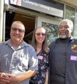 door prize drawing. Following lunch, new CARE Board member Bob Wiseman joined Clyde Allen and Linda Barde to conduct the door prize drawing, with lots of prizes being won by retirees. The Chabot Federal Credit Union contributed a number of high-value door prizes for the event.