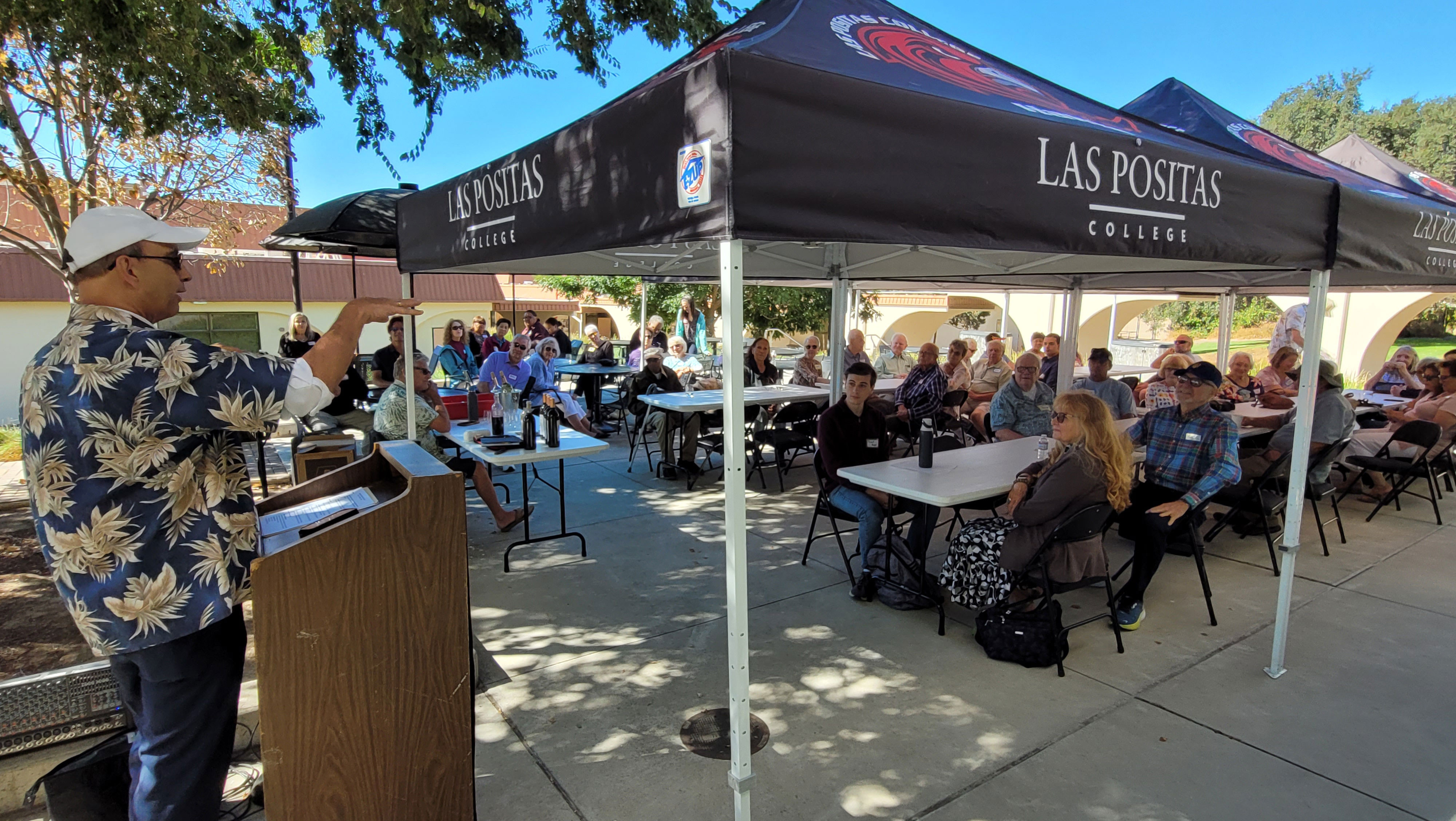 We will have a delicious buffet luncheon provided by Fresh and Natural, LPC’s catering service and, thanks to the efforts of LPC's Viticulture Program’s “Campus Hill Winery”, we will be enjoying two wines from the program with our lunch! There will even be a chance to take home a bottle as a winner in our CARE Luncheon raffle! No purchase necessary, every attendee gets a raffle ticket. Our luncheon program will feature short presentations of particular interest to retirees, including an update from CARE Board member Carol Edson on the new Las Positas Columbian mammoth exhibit. You won’t want to miss this annual opportunity to reconnect with former colleagues, meet new ones, and enjoy a wonderful afternoon dining outside eating a delicious lunch and drinking fine wine with friends. Afterwards, if you so choose, you may take a guided adventure tour of the campus featuring the new exhibit of the oldest Columbian mammoth bones to be discovered in these foothills. We look forward to seeing you there! Driving directions on Page 1 of Fall 2025 CARE Newsletter These scenes from past reunions give a sense of